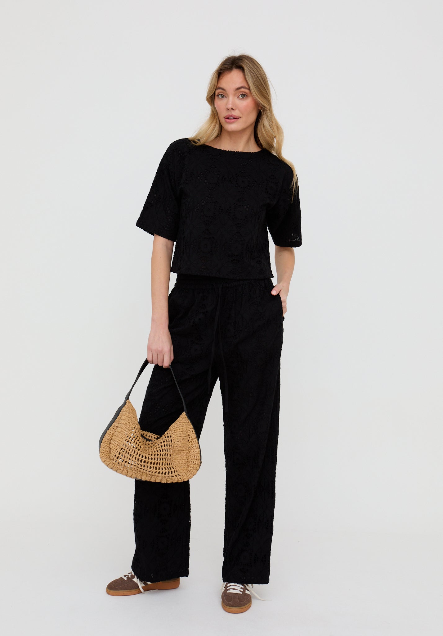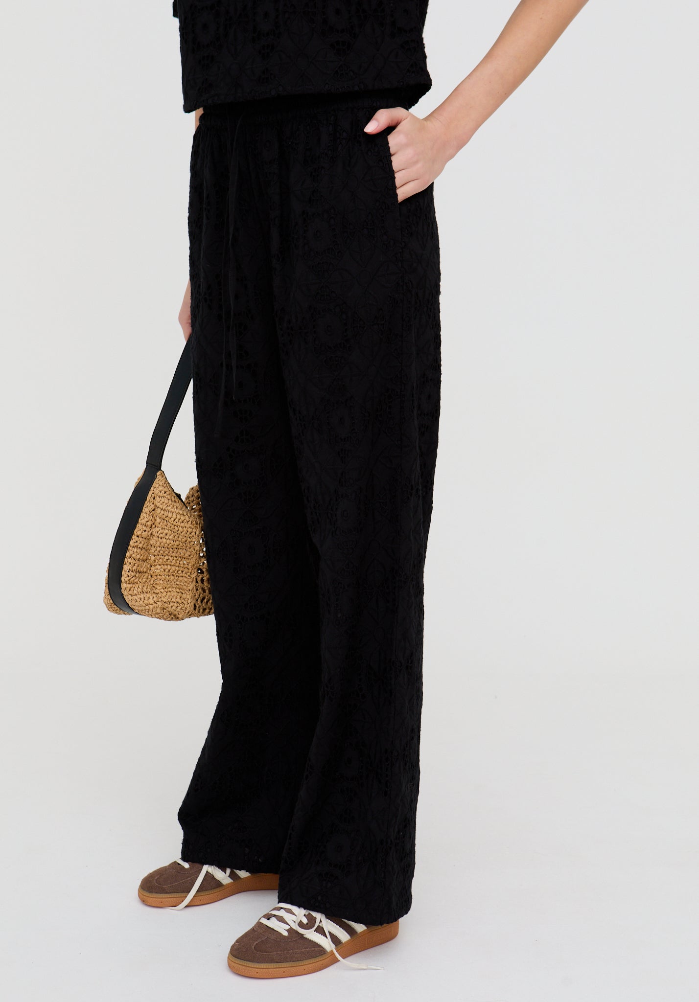 Opal Broderie Anglaise Wide Leg Trouser In Black