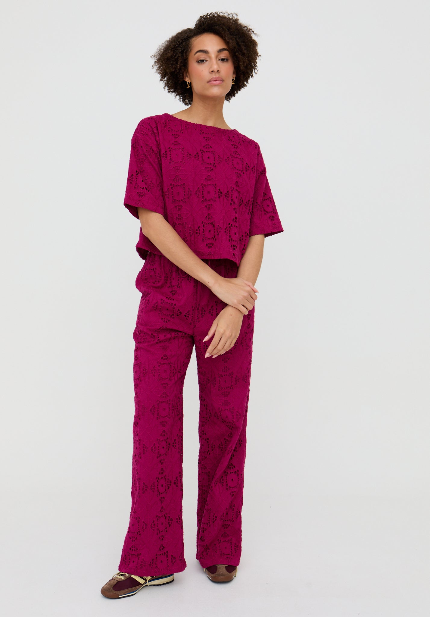 Opal Broderie Anglaise Wide Leg Trouser In Pink