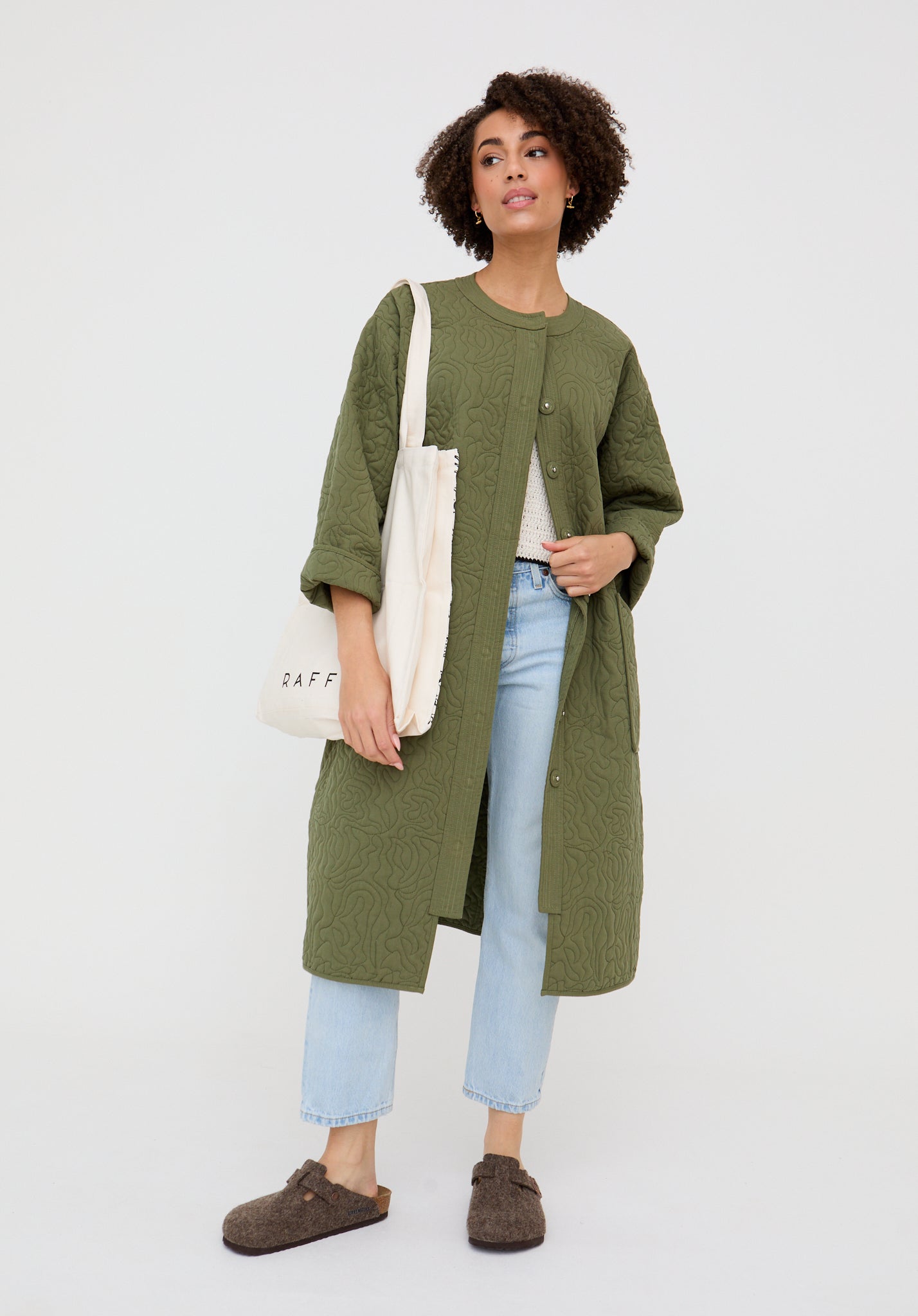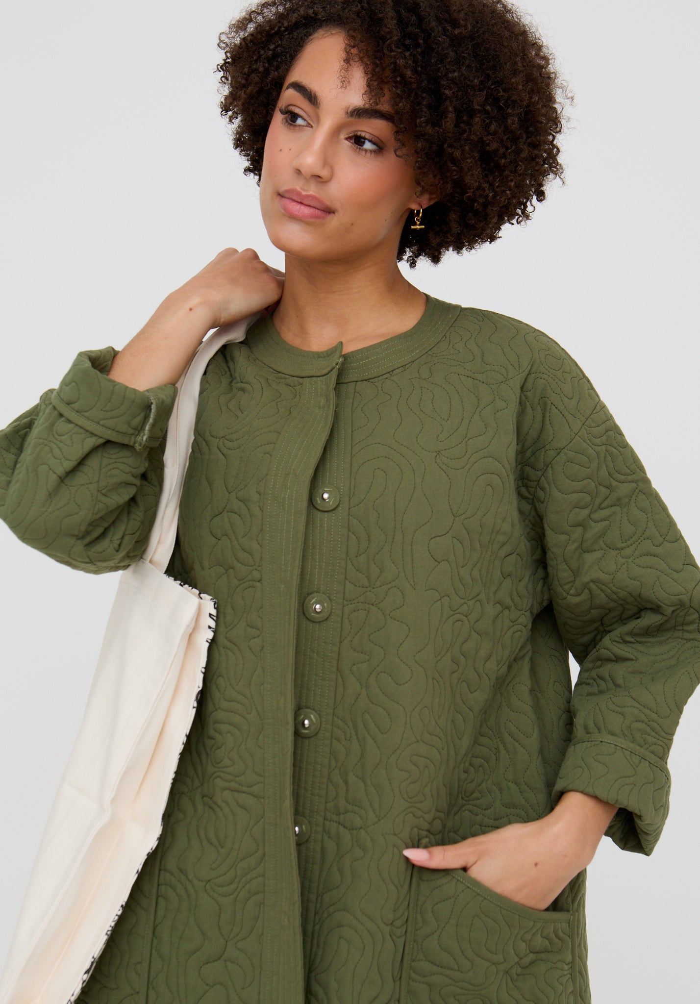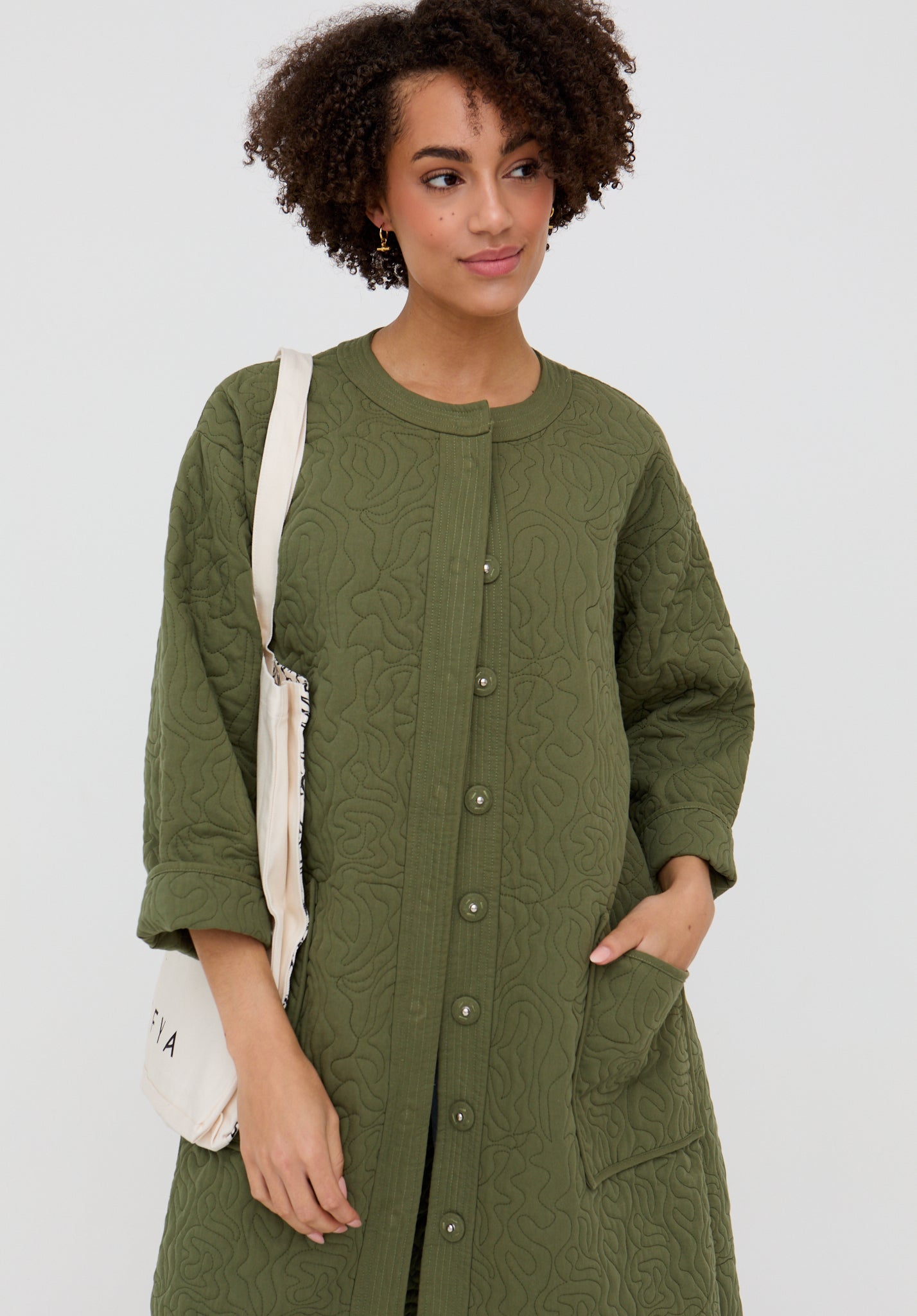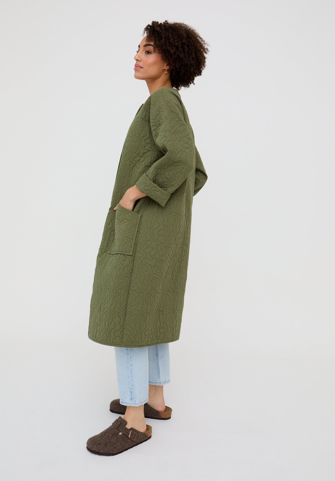 Heidi Quilted Coat In Khaki Green