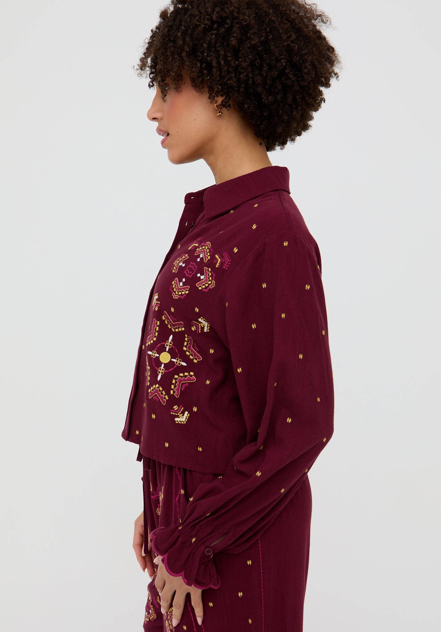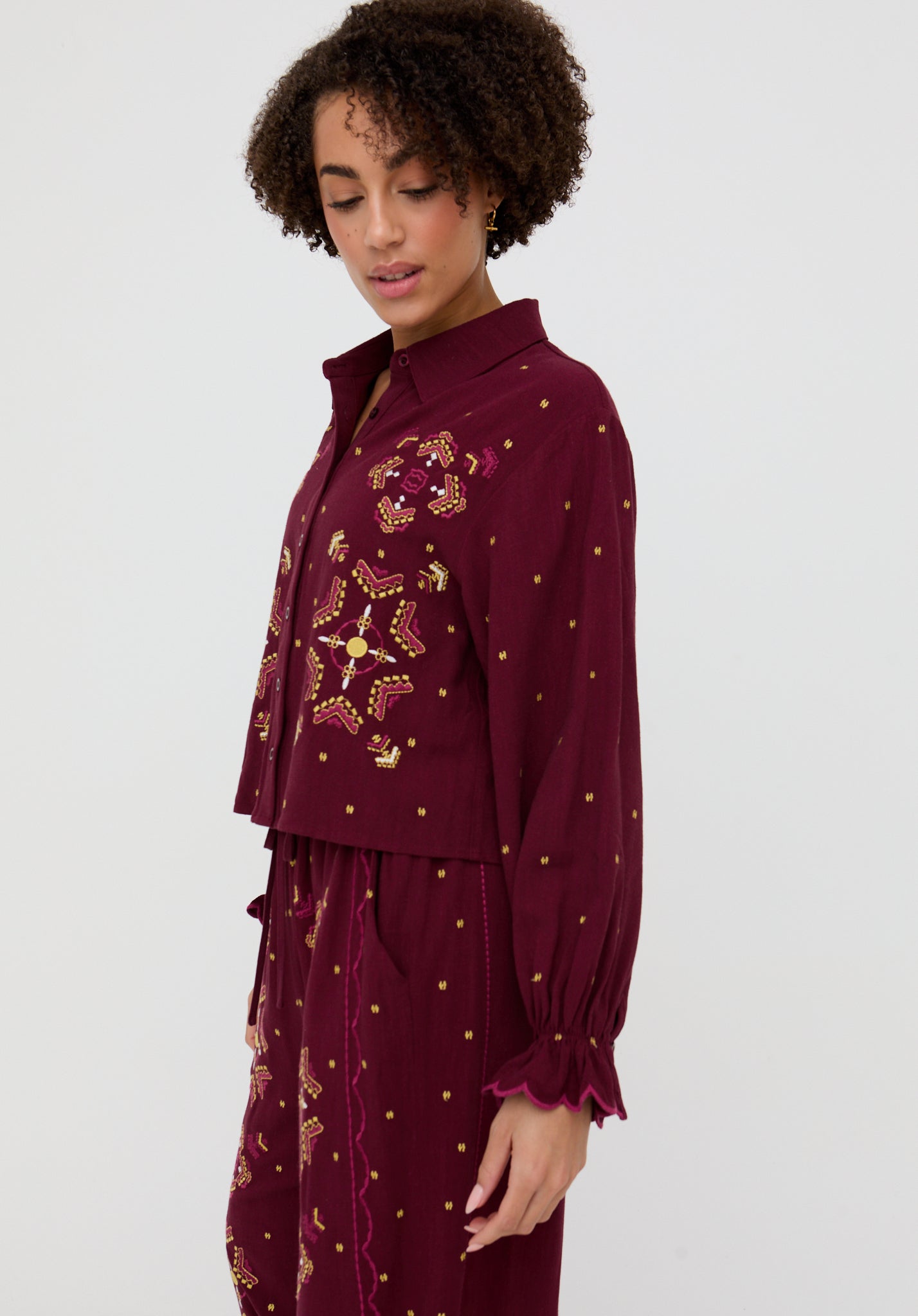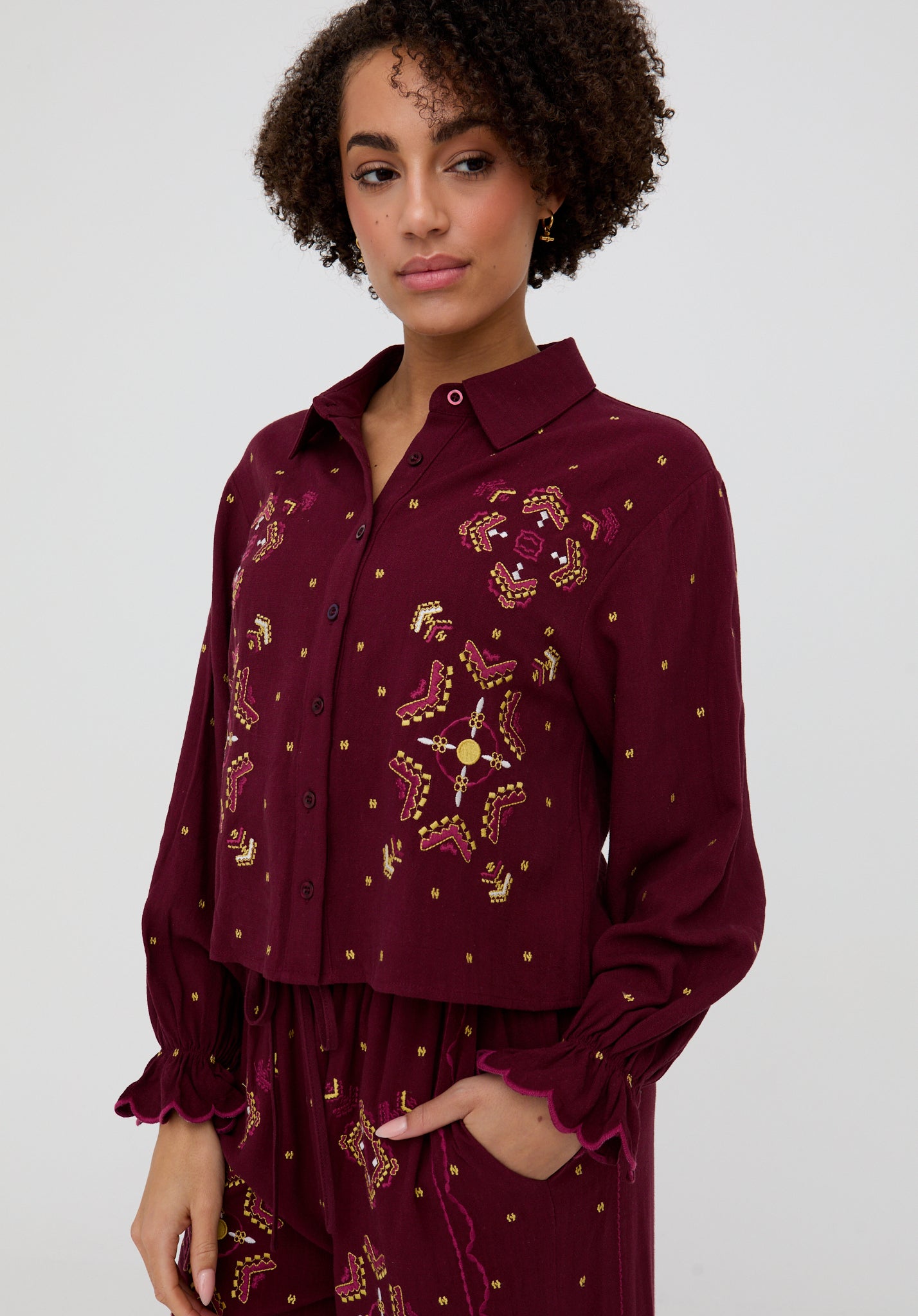 Penny Boxy Embroidered Shirt In Aubergine