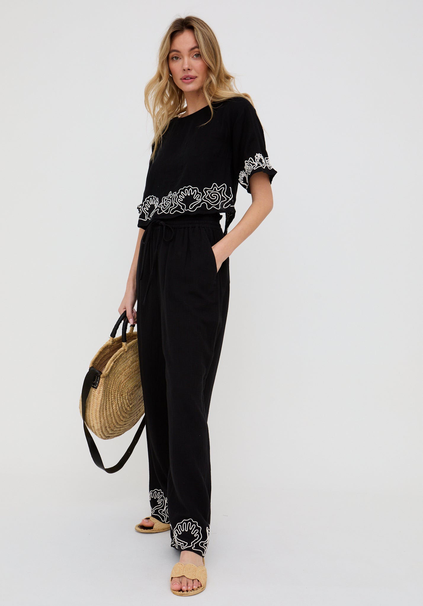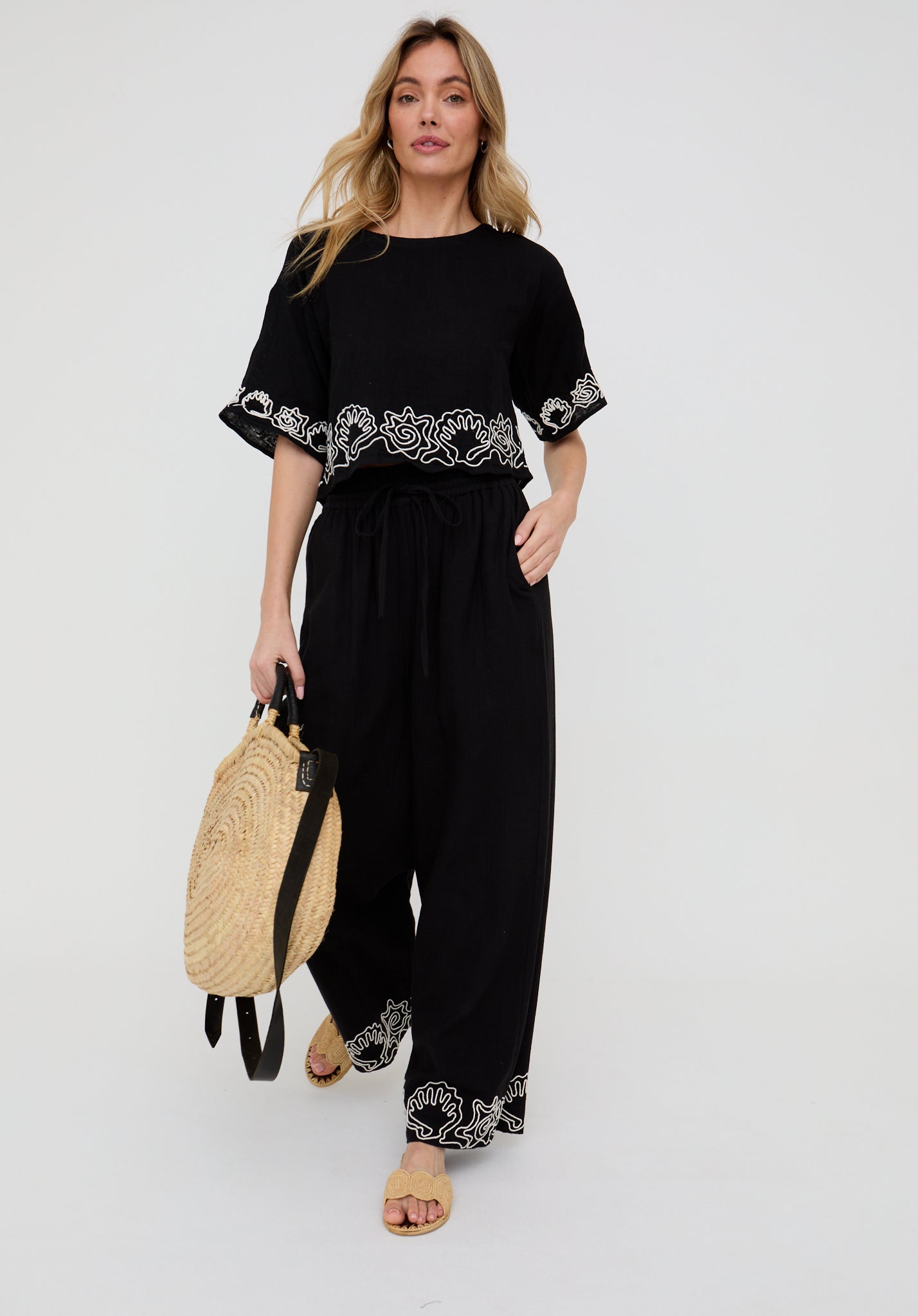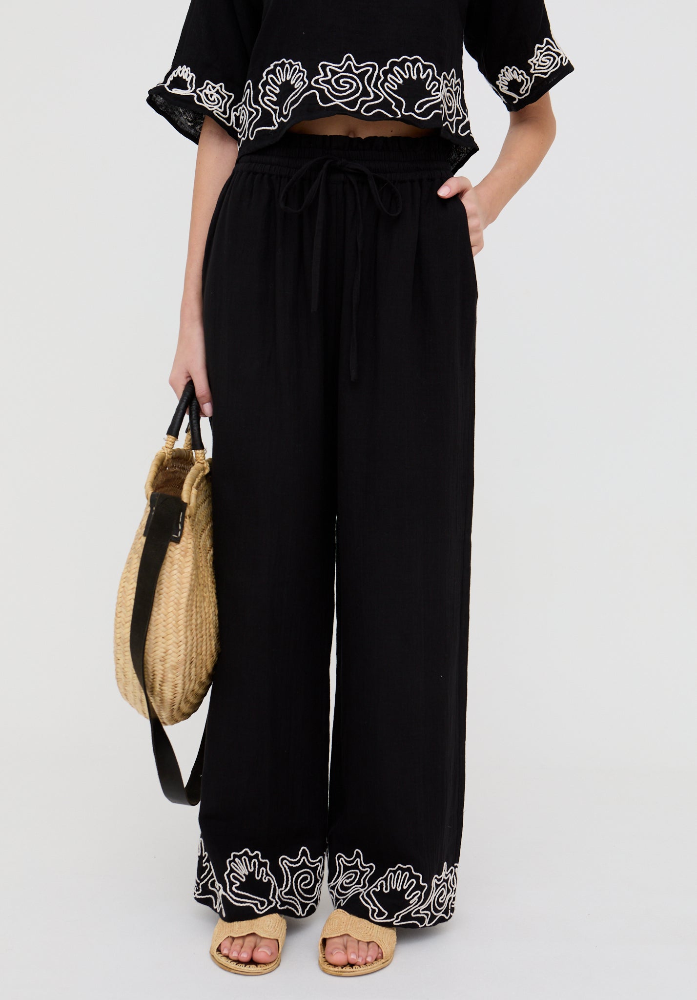 Pair with our Milly embroidered crop top for a coordinated look.